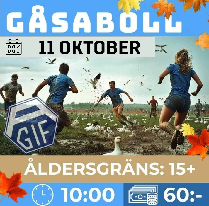När stormen har lagt sig efter helgen så är det dags att förbereda sig inför årets kanske viktigaste begivenhet. Gåsaboll! ⚽ Glöm Champions League, detta är turneringarnas turnering! 👊 Du kommer dit, blir lottad i lag och sen spelar vi boll. Det är här dom riktiga vinnaren koras. Något du kan skryta med ett år framöver! Nästa lördag, 11 oktober, kl 10.00. Kostnad: Priceless (eller 60 kr) ⚽⚽⚽ 💙💙