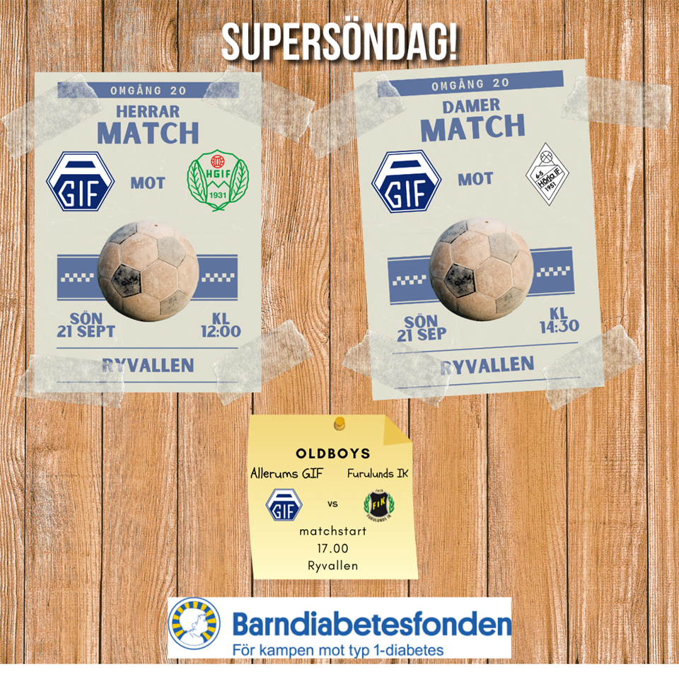 SuperLördagen blev en succé! Nu utökar vi och kör SuperSöndag!! 💥 Kl 12.00 går herrarna för seriesegern mot Hovs GoIF. Vid vinst är förstaplatsen säkrad! Därefter kliver damerna på planen för match mot Hörja IF. Den drar igång 14.30 💪 Det slutar inte där för det finns ett lag till som går för seriesegern. Vårt oldboys ligger delad etta i tabellen och nu på söndag tar dom emot Furulunds IK klockan 17.00. ↗ Allt detta sker hemma på Ryvallen Supersöndag it is och matchpartner för alla matcher är som alltid Barndiabetesfonden Skane och Barndiabetesfonden Tack ❤️❤️ 💙💙 ⚽⚽⚽ #gameday #supersunday #layallyourloveonme #talangförsvinneraldrig #gammaläräldst Allerums GIF 19 sep 2025 0kommentarer